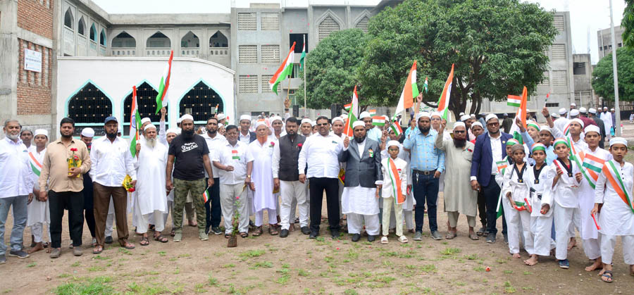 प्रारंभी मदरसेमध्ये तिरंगा ध्वज फडकवून सलामी देण्यात आली. या कार्यक्रमासाठी नगरसेवक संजय घुले, अब्दुस सलाम, हाजी मन्सूरभाई शेख, चेअरमन आसिफ शेख, सचिव मतीन सय्यद, हाजी शकिल अहमद चमडेवाले, हाजी इरफान शेख, हाजी इब्राहिम शेख, मदरसेचे प्रमुख (कारी) अब्दुल कादिर, आयटीआयचे प्राचार्य नदिम शेख, हाजी इमरान, रिजवान शेख, तय्यब शेख, अब्दुल जब्बार, हाफिज बुऱ्हाण, मौलाना इसहाक आदींसह मदरसामधील शिक्षक व विद्यार्थी मोठ्या संख्येने उपस्थित होते.